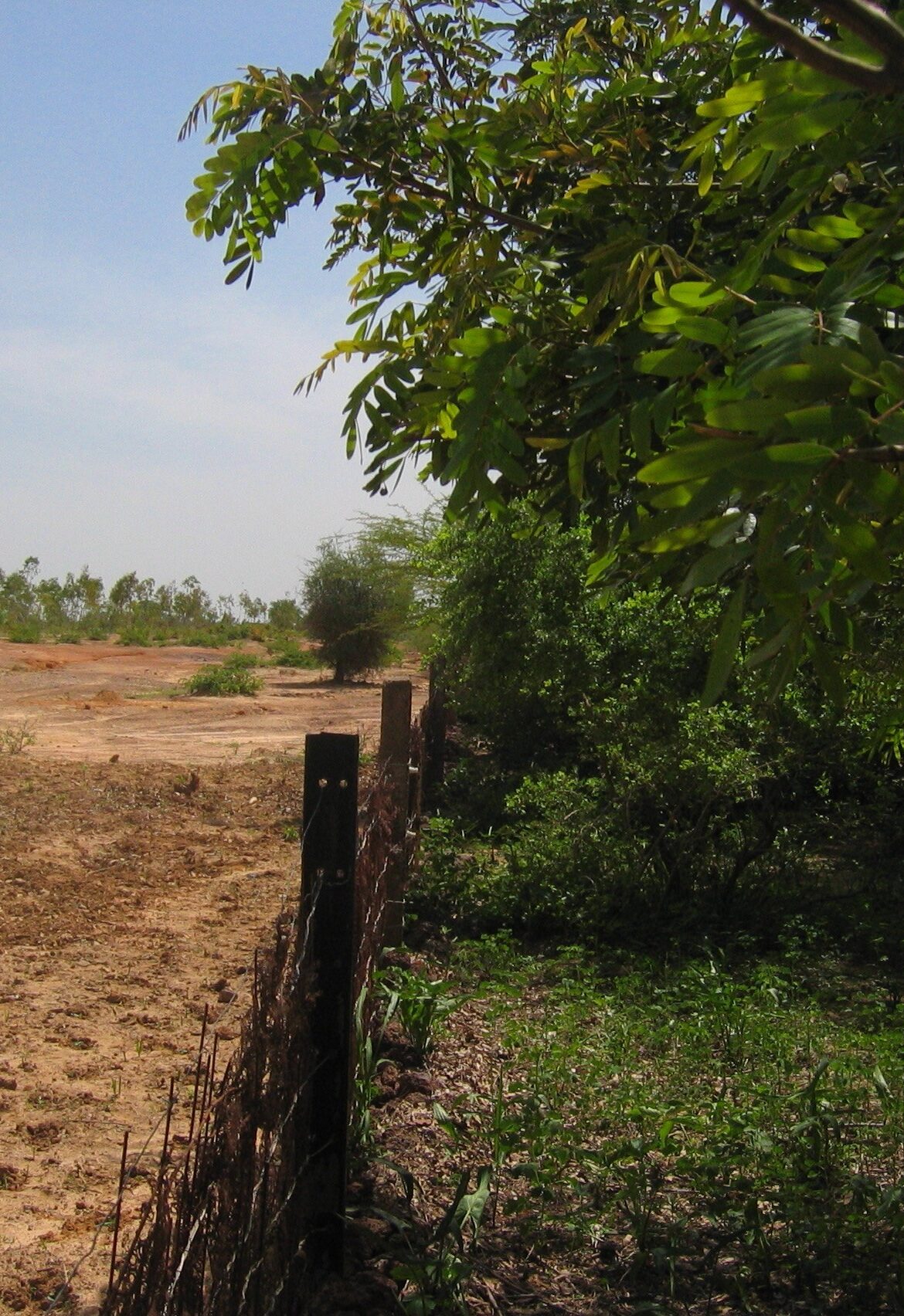 Une bande étroite en bordure de la parcelle est réservée à l’usage agricole – généralement pour la culture du mil, des haricots ou des arachides. Cette bande sert également de coupe-feu.