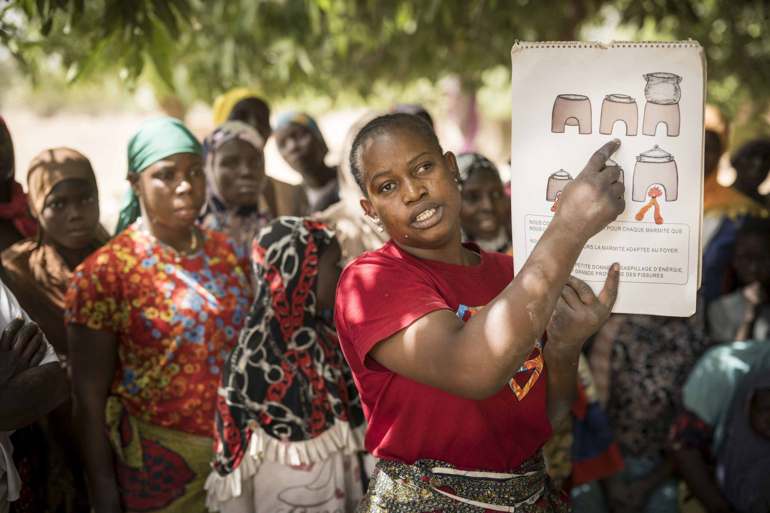 - Frauen lernen den Bau, die Nutzung und Erhaltung energieeffizienter Kochstellen, welche den Holzverbrauch um bis zu 60% reduzieren. Die gewonnene Zeit – sie benötigen viel weniger Zeit zum Holzsammeln und Kochen – investieren sie in die Erschliessung neuer Einkommensquellen z.B. durch die Herstellung und den Verkauf von Gewürzen oder Seifen. Dadurch erlangen sie wirtschaftliche Unabhängigkeit und Selbstvertrauen.